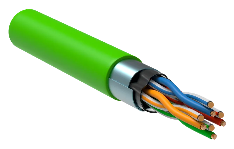 Кабель связи F/UTP категория 5E, твёрдая центральная жила 24 AWG solid, экранирование F/UTP, оболочка LSZH нг(А)-HFLTx (пожаробезопасный), длина 305 м, цвет зеленый. Бренд ITK.