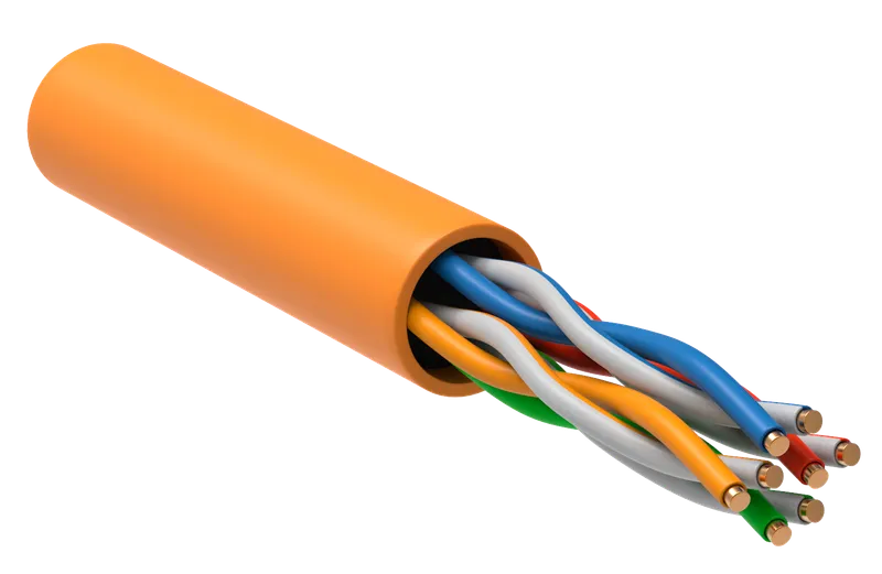 Кабель витая пара U/UTP категории 5E, 4 пары по 24AWG, оболочка LSZH, цвет оранжевый, длина 305 м. Производитель: ITK.